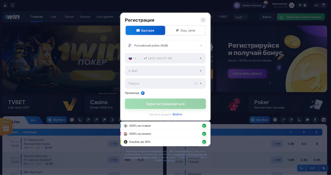 Используйте промокод: 1winrupromo